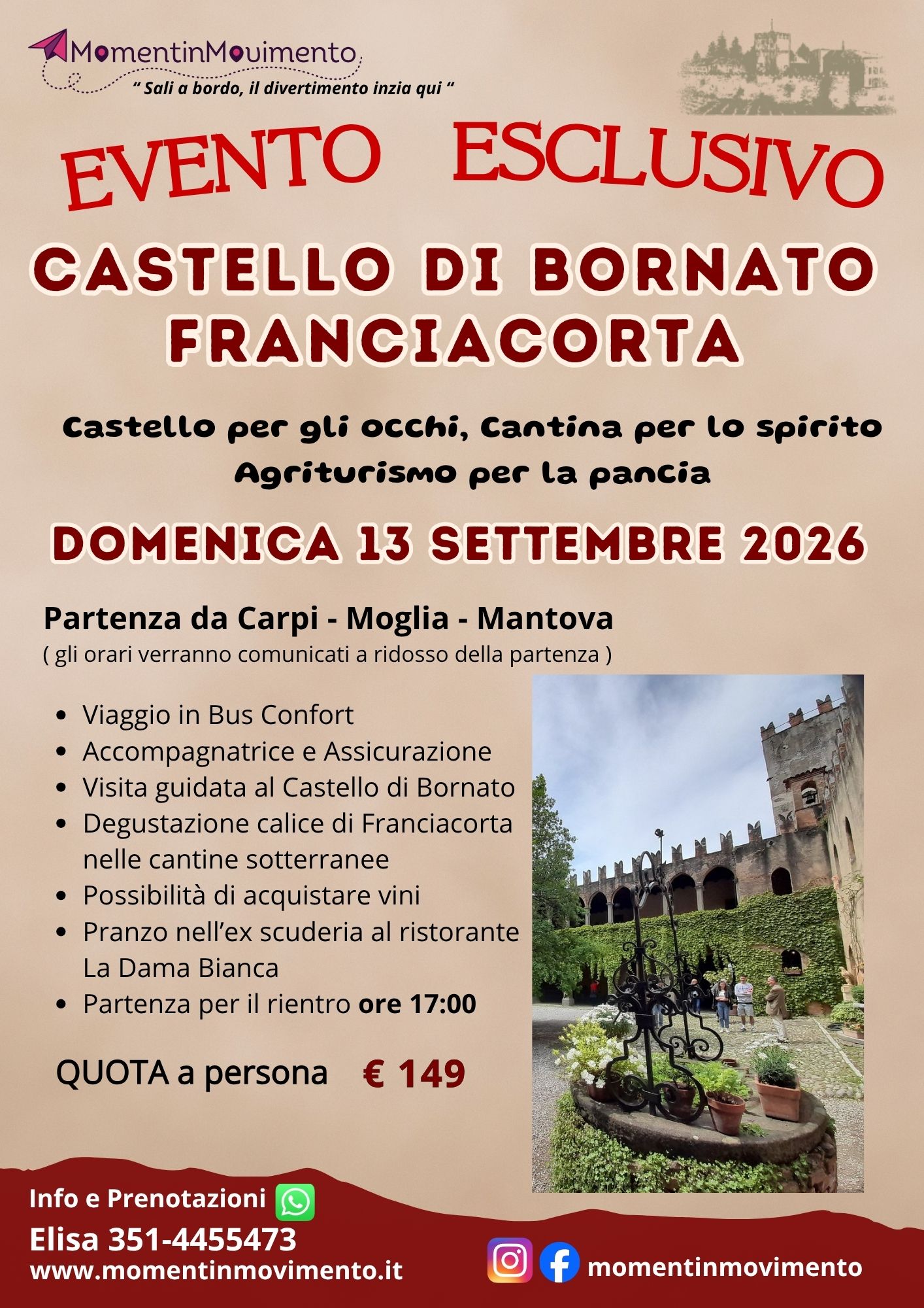 Unisciti a noi per una domenica indimenticabile tra le colline bresciane. Scopri il fascino di un castello medievale, degusta le eccellenze del territorio nelle cantine sotterranee e goditi un pranzo raffinato in un’atmosfera di altri tempi. Un’esperienza sensoriale completa che unisce storia, vino e gastronomia locale.